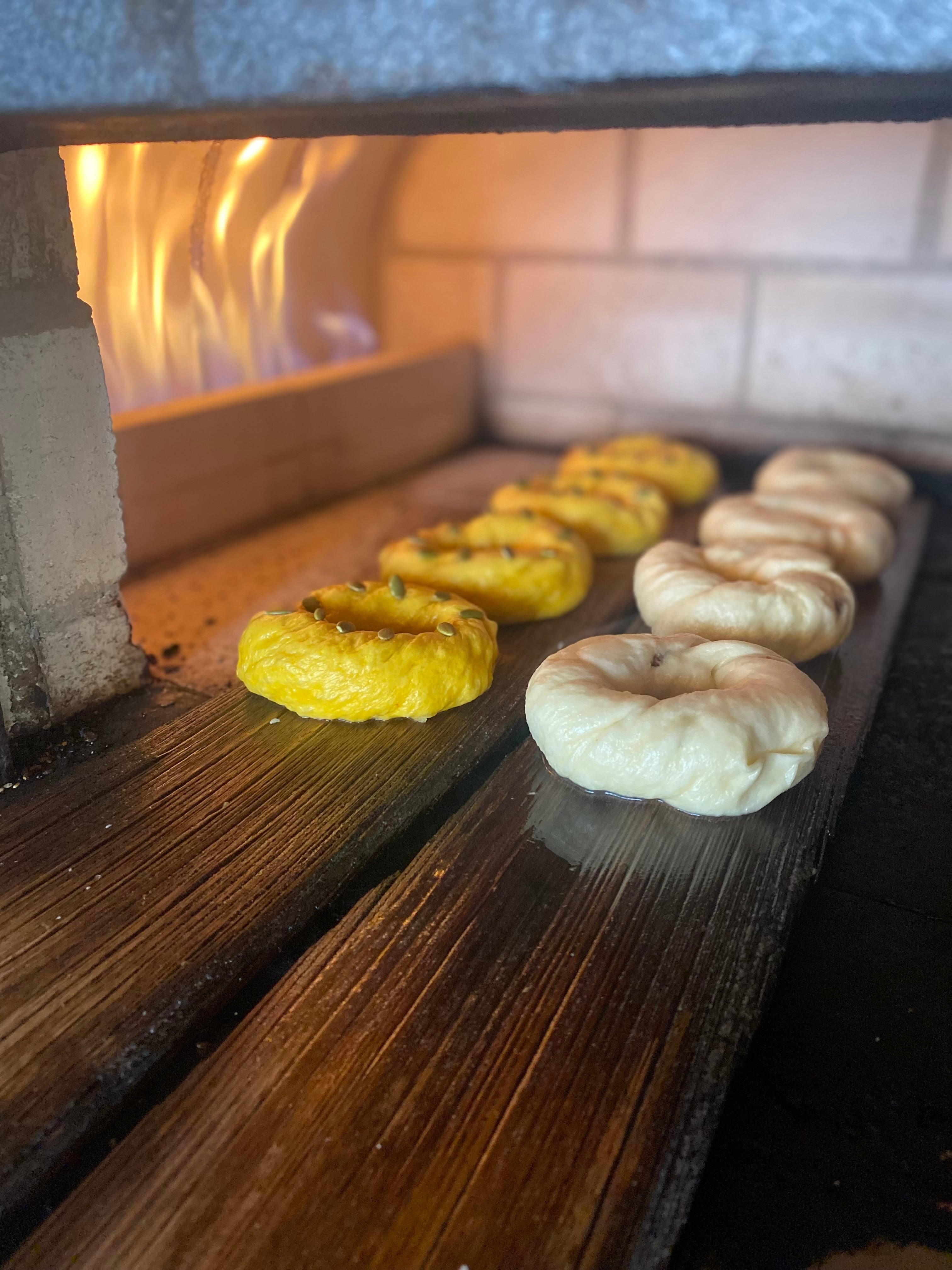 何もまぶしていない、茹でたときの蜂蜜の甘さがほんのり香るプレーンのベーグルをハーフダース(6個)セットでご用意しました。 プレーンですので、甘いものもしょっぱいものもどちらも組み合わせやすく、トーストやサンドイッチ、どちらにも使い勝手の良いベーグルです。 保存は常温では3日以内、高温多湿な場所を避けて、冷暗所に保管してください。 冷凍する場合は、冷凍庫に保存袋に入れた状態で約3週間の日持ちになります。 その日焼いたものをクール宅配便(クロネコヤマト)にて発送いたします。 【モントリオールベーグルの特徴】 卵と麦芽を使用し、塩を入れないで作った生地を、蜂蜜入りのお湯で茹でてから石窯で焼き上げます。リングがはっきりした形、外側はサックリ、中身もっちり!ほんのり甘みがあり風味豊かです。