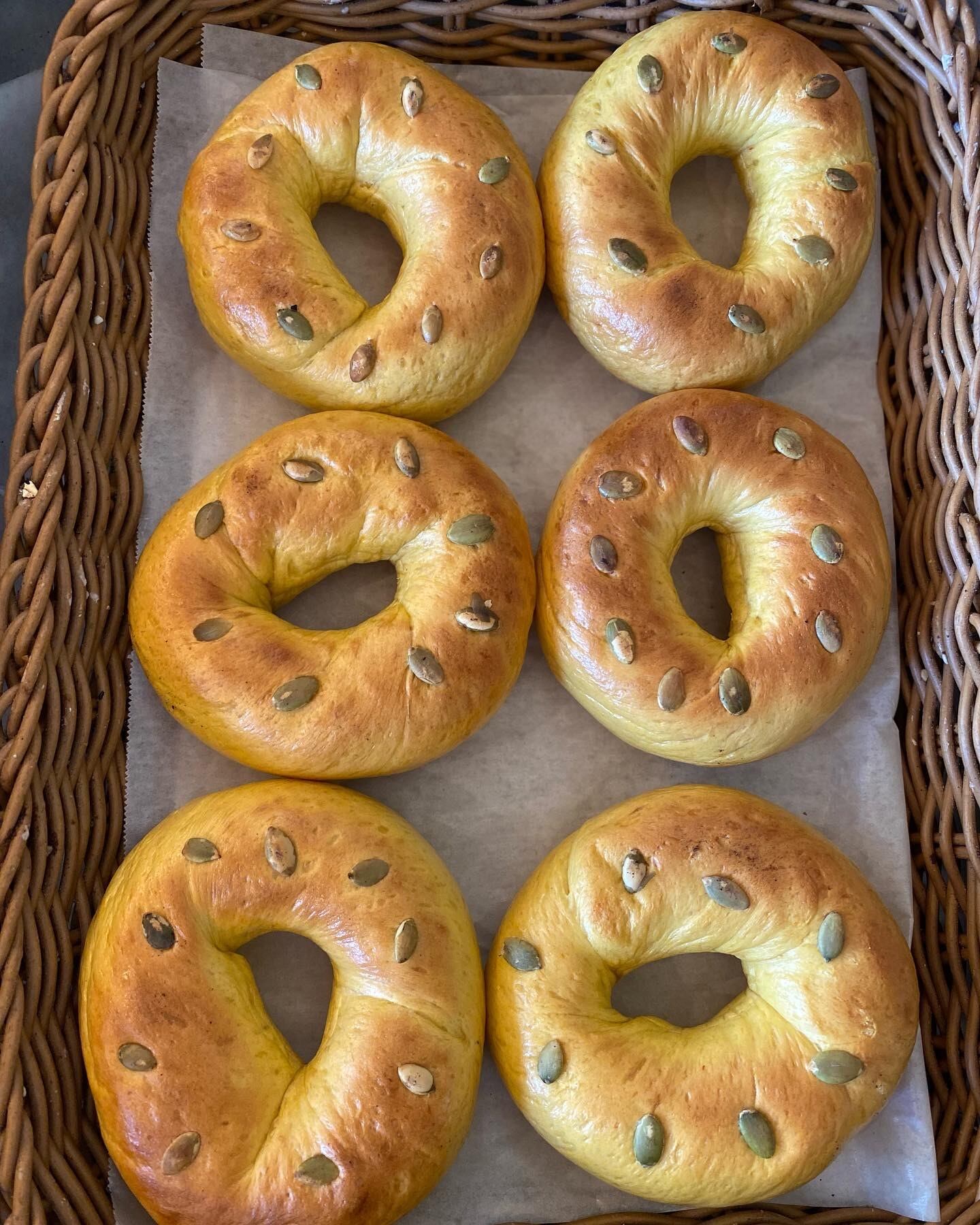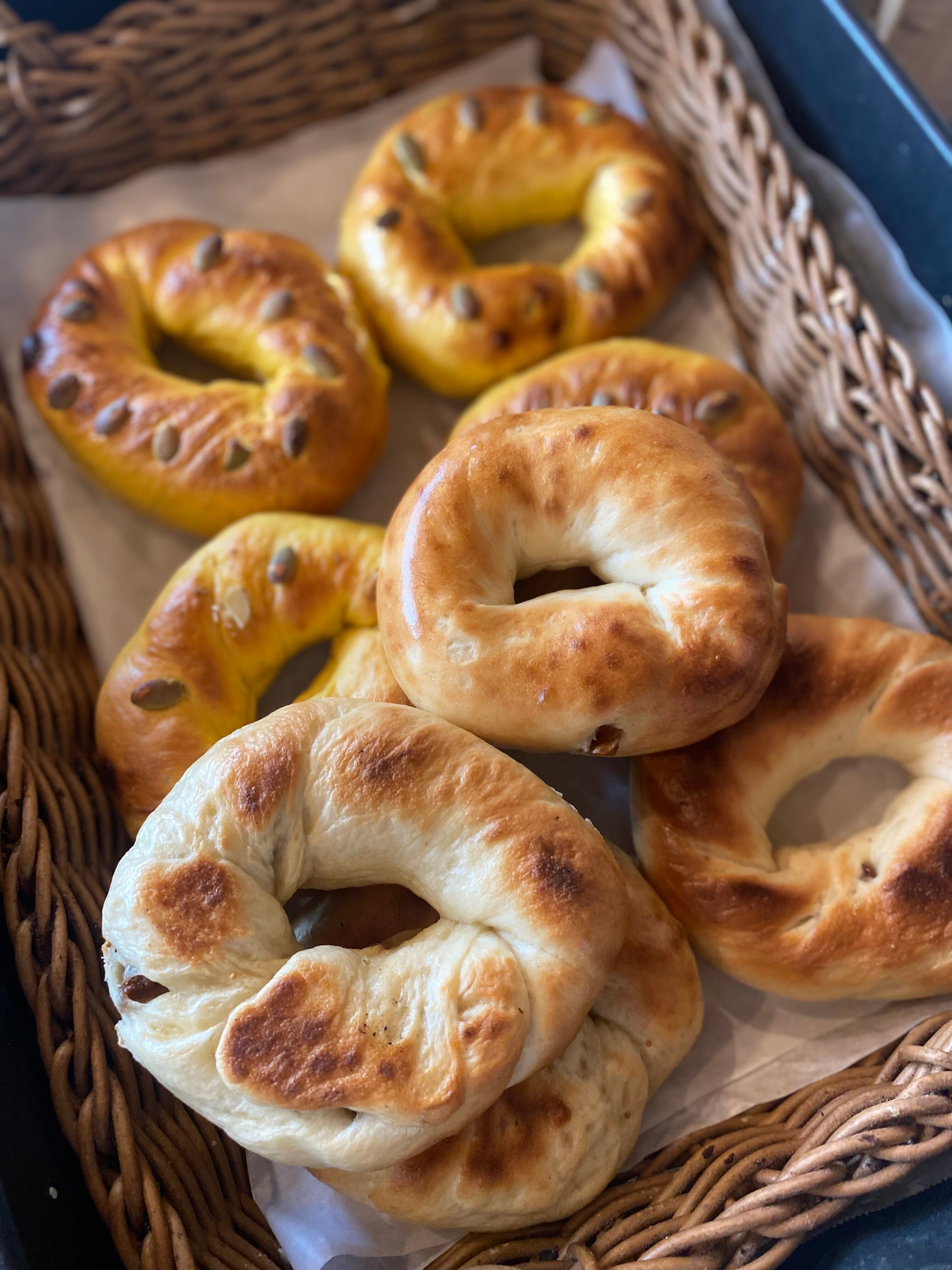 卵と麦芽を使用し、塩を入れないで作った生地を、蜂蜜入りのお湯で茹でてから石窯で焼き上げます。リングがはっきりした形、外側はサックリ、中身もっちり!ほんのり甘みがあり風味豊かです。