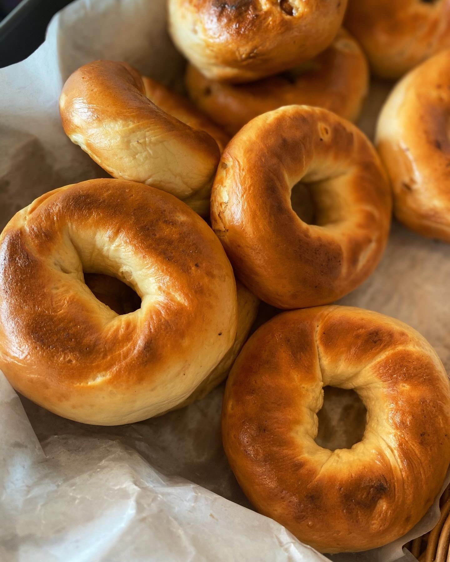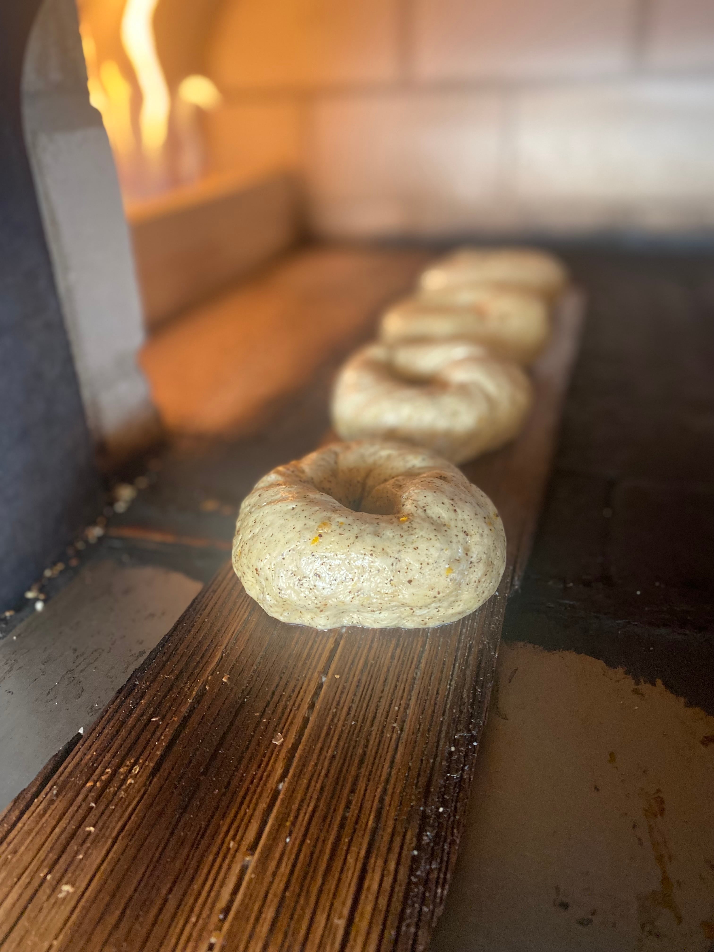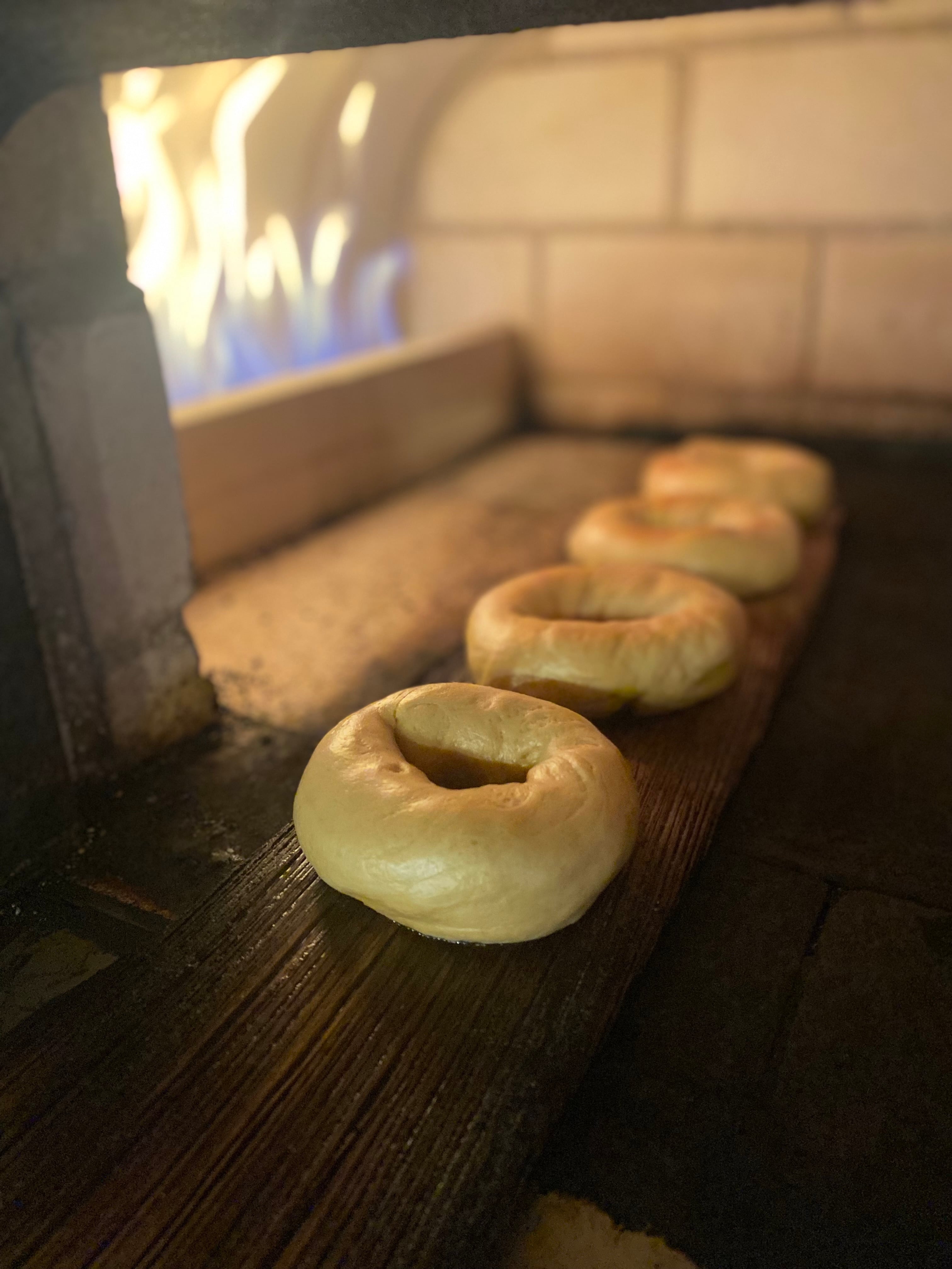 卵と麦芽を使用し、塩を入れないで作った生地を、蜂蜜入りのお湯で茹でてから石窯で焼き上げます。リングがはっきりした形、外側はサックリ、中身もっちり!ほんのり甘みがあり風味豊かです。