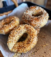 卵と麦芽を使用し、塩を入れないで作った生地を、蜂蜜入りのお湯で茹でてから石窯で焼き上げます。リングがはっきりした形、外側はサックリ、中身もっちり!ほんのり甘みがあり風味豊かです。