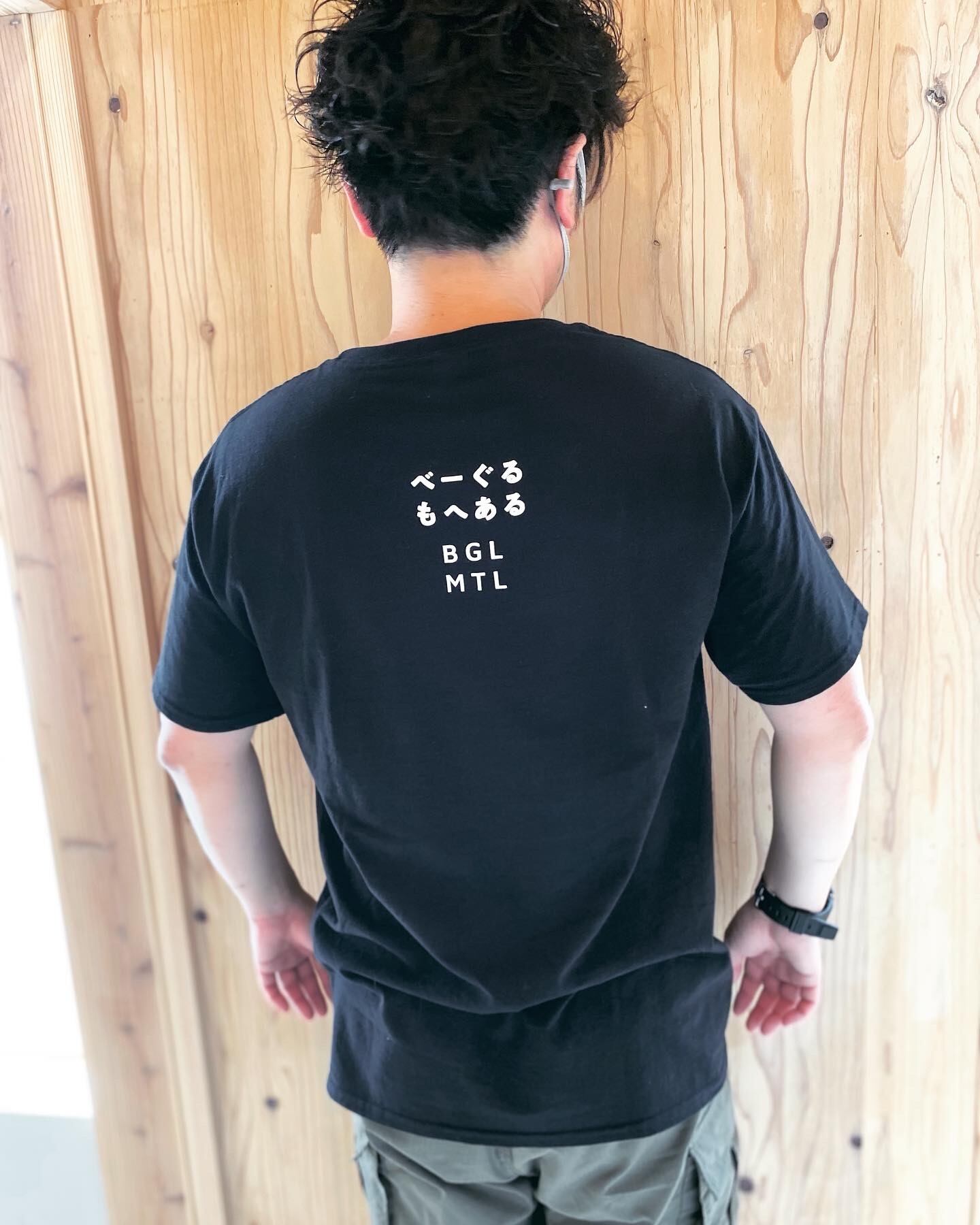 べーぐるもへあるのロゴを胸元にあしらった男女兼用(ユニセックス)のTシャツです。バックにも店名をプリントしてあります。