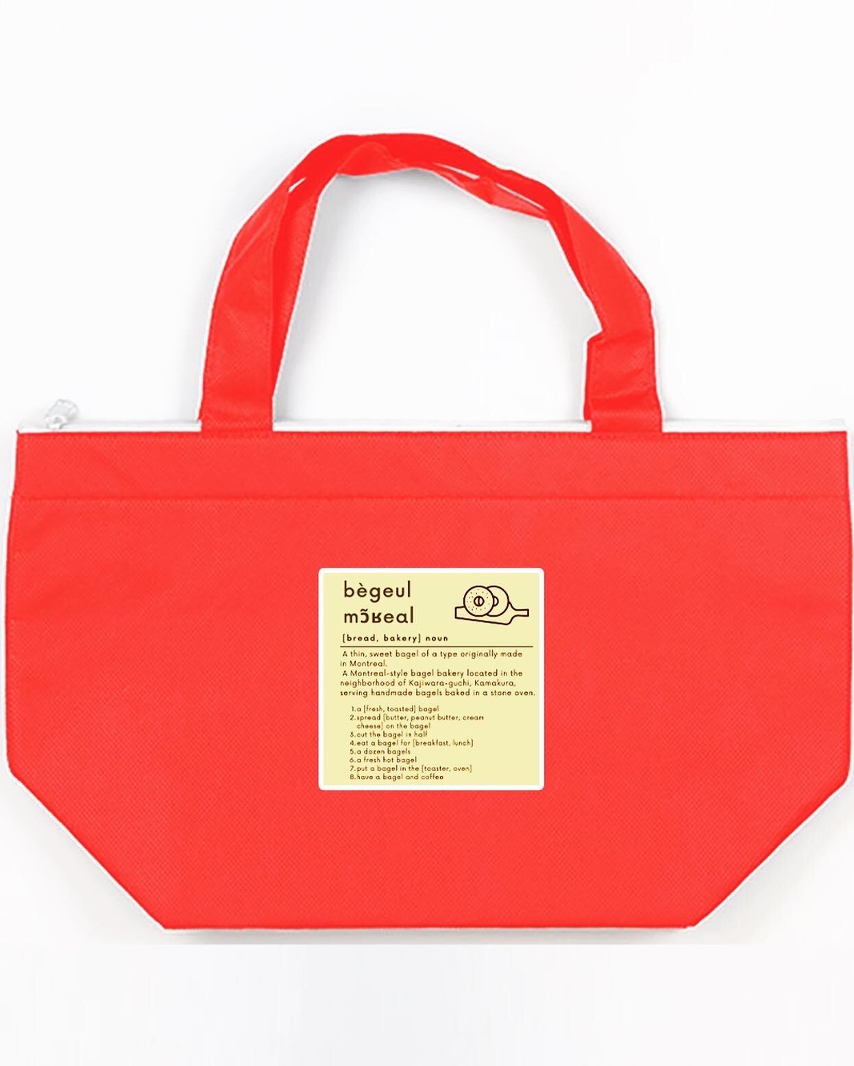 バッグ正面真ん中に、二周年記念のデザインを施したランチトートサイズの保冷バッグです。